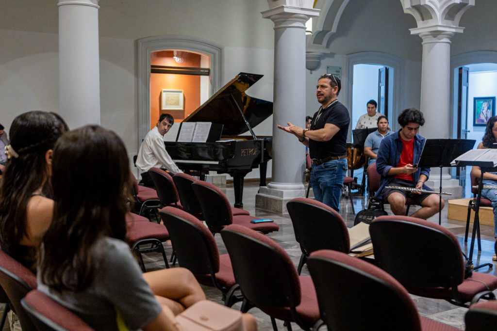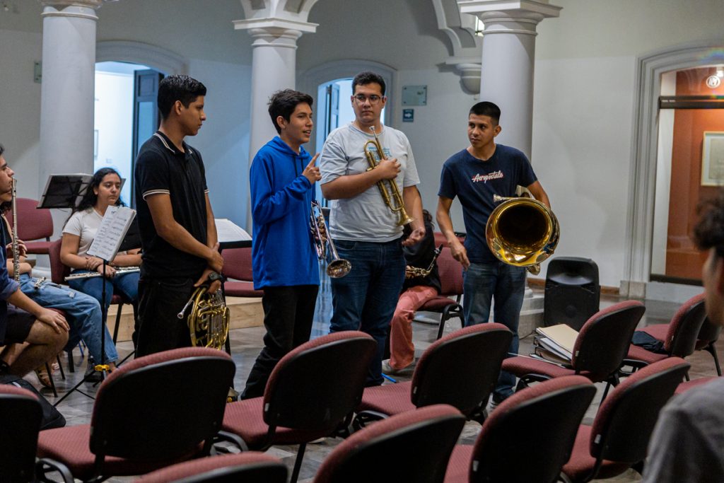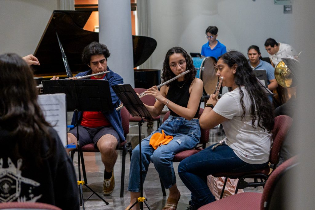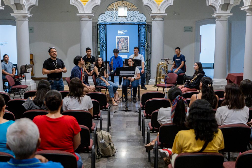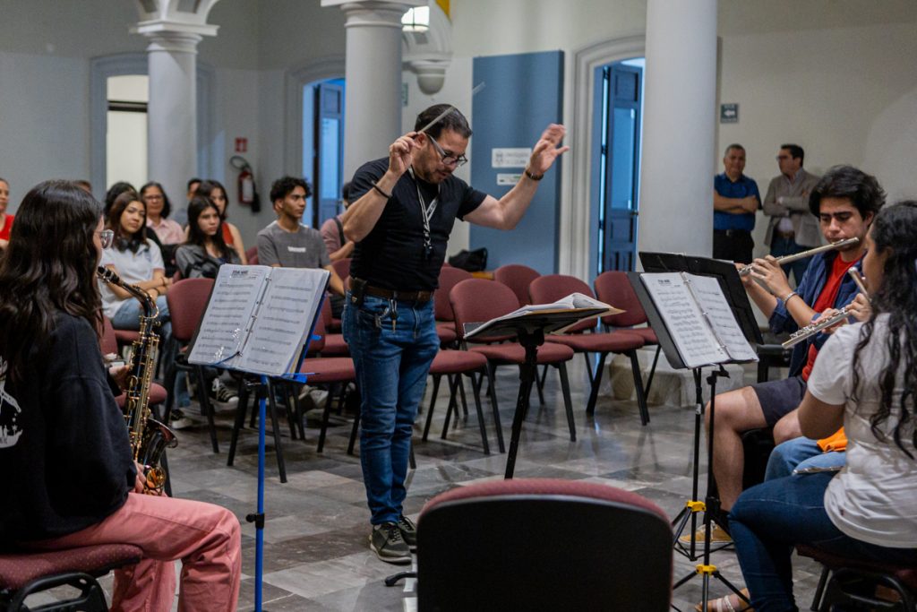 El ensayo se realizó en el Salón del Vitral, donde los y las asistentes disfrutaron algunos clásicos de la música como Baby Elephant walk, de Mancini y La marcha imperial, de Star Wars, mientras los miembros de la banda sinfónica explicaban cómo se forma la agrupación y el porqué de los instrumentos que tocan.
