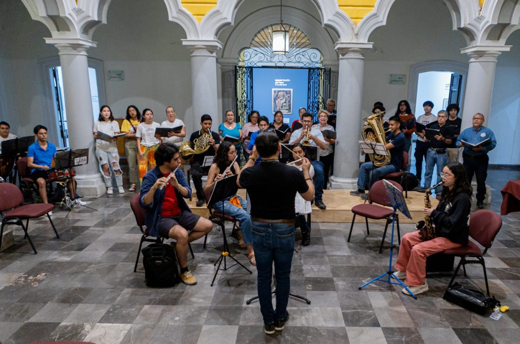 La Banda Sinfónica de la Universidad de Colima, bajo la dirección de José Antonio Frausto Zamora, presentó en la Pinacoteca Universitaria un ensayo abierto para dar a conocer el trabajo de preparación que realizan quienes integran dicha agrupación. Esto como parte del programa “Cultura in situ”, que realiza la Dirección General de Difusión Cultural.