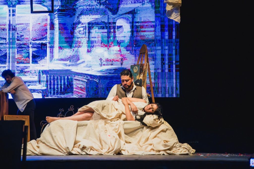 En el marco del centenario de la muerte del compositor italiano Giacomo Puccini, La Boheme se presentó en una versión renovada que combinó la esencia de la obra original con elementos contemporáneos. La producción contó con una pantalla de 5 metros de alto donde se proyectaron los fondos ambientados de los 4 actos, creando una atmósfera envolvente que transportó al público al París de 1947.