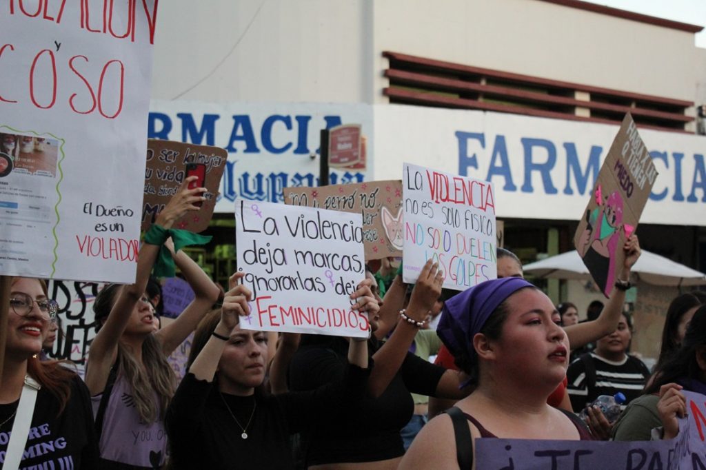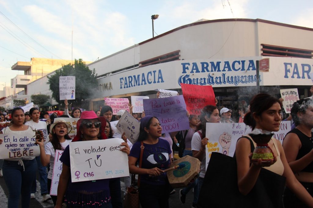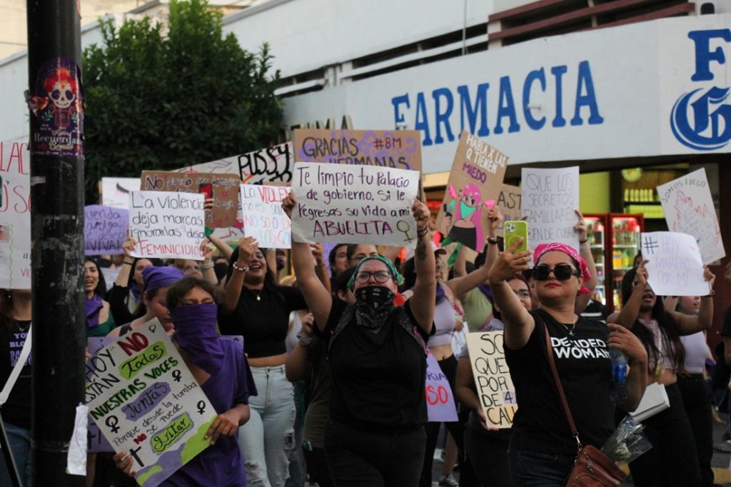La marcha con motivo del Día Internacional de la Mujer que se realizó en la ciudad de Colima, concluyó con el lanzamiento de gases lacrimógenos desde el interior de Palacio de Gobierno, cuya fachada fue rayada, destruida e incendiada la barda de madera que la protegía.