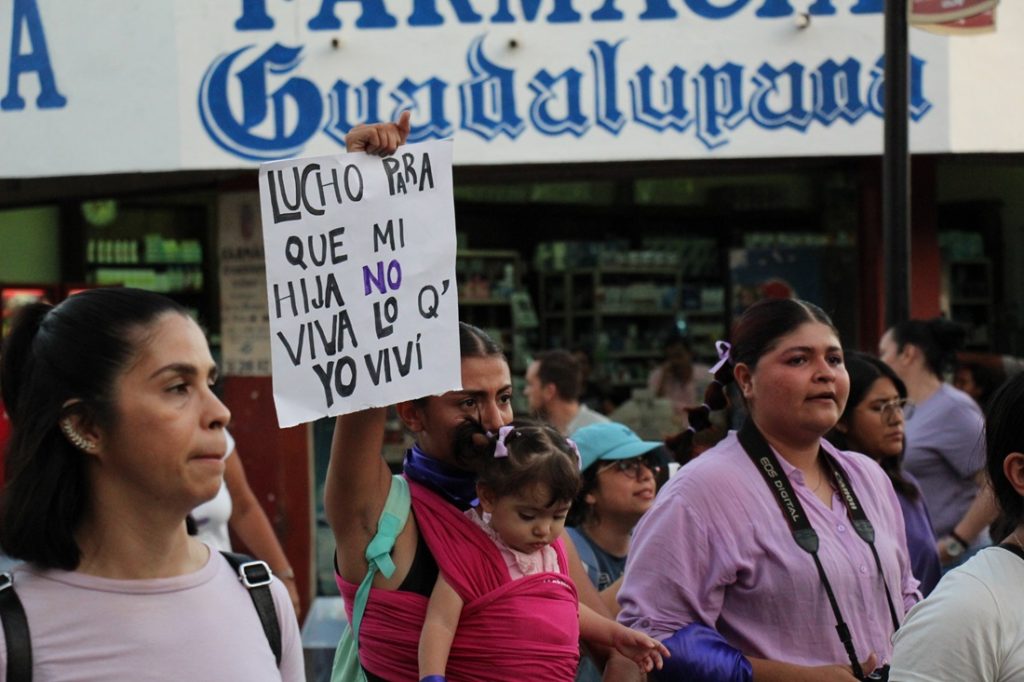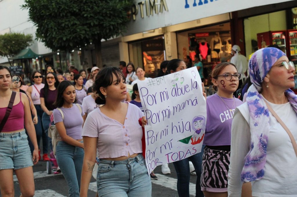 La marcha siguió por la Galván hasta que llegaron a su cruce con la calle Madero, donde hicieron una segunda parada; ésta fue afuera del domicilio de La China, donde el contingente guardó un minuto de silencio.