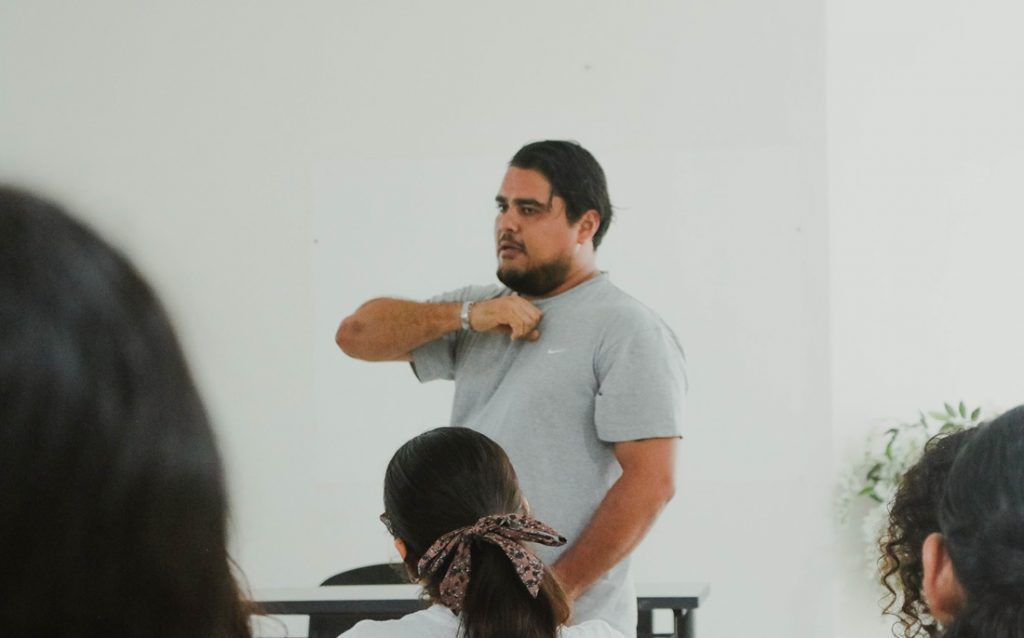 Durante el taller, las y los estudiantes comprenderán la importancia de dominar un lenguaje incluyente y los beneficios como sociedad para que más personas se involucren y se sumen a tener estos conocimientos. Ya realizaron una práctica donde conocieron el abecedario, los números, y cómo decir nombres y lugares.