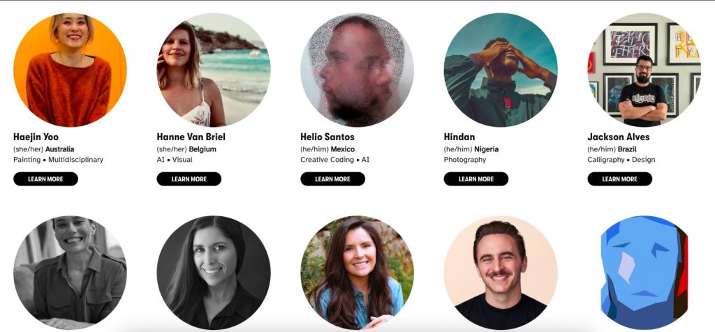 De acuerdo con el portal internet de HUG, los artistas son seleccionados bajo la premisa de ser “artistas excepcionales que están dando forma al futuro del arte y la creatividad”. Se refiere, de manera especial, a las y los artistas que están trabajando en arte contemporáneo y también en el uso de la tecnología.