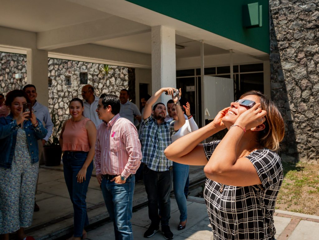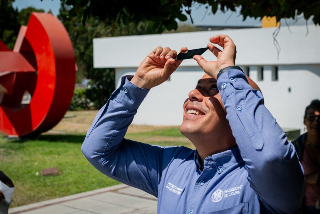 Durante el paso de la luna entre el Sol y la Tierra, estudiantes y trabajadores de la Universidad estuvieron siguiendo el fenómeno astronómico mediante redes sociales o con cajas elaboradas ex profeso y los espacios de luz y sombra proyectados por la fronda de los árboles. También utilizaron por 3 o 4 segundos vidrios oscuros.