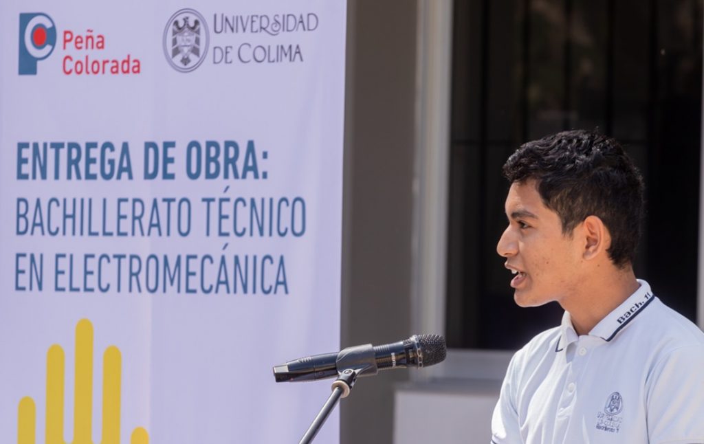 Peña Colorada, la Universidad de Colima y el Ayuntamiento de Minatitlán entregaron la segunda parte del proyecto para desarrollar el programa de Técnico en Electromecánica con estándares no solo regionales o nacionales, sino internacionales, en el Bachillerato 11 ubicado en Minatitlán.