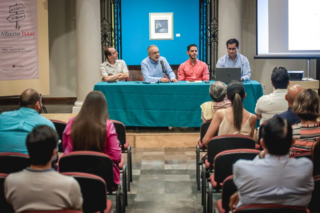 Previo a la inauguración, se llevó a cabo el conversatorio: “Alberto Isaac, un flujo permanente”, a cargo de Alberto Argüello Grunstein y Amaury Fernández Reyes, quienes hablaron de las facetas del cineasta, del mensaje irónico de sus pinturas, sus documentales, de su paso por la natación, su relación con escritores como Gabriel García Márquez, Carlos Monsiváis y con actores de la época, así como de su amor por Colima, que para él fue un lienzo perfecto para la filmación de varias de sus películas.