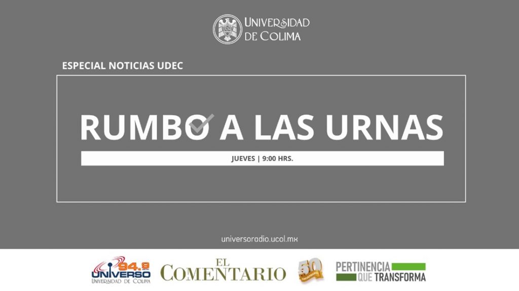Este jueves 25 de abril y hasta el próximo 23 de mayo, de 9 a 9:30 de la mañana, “Universo 94.9”, emisora de la Universidad de Colima realizará el programa Rumbo a las Urnas, en el que a partir de entrevistas con representantes o presidentes de partidos políticos, promoverá el fortalecimiento de la democracia y el voto informado y razonado.