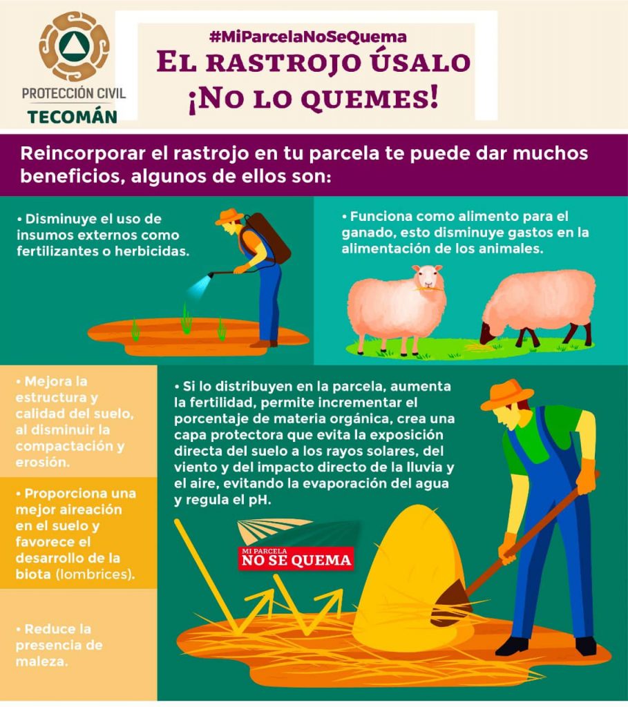 En este contexto, se promueven alternativas para evitar las quemas agropecuarias. Por ejemplo, en lugar de recurrir al fuego para limpiar terrenos y facilitar la labranza, se sugiere la incorporación de rastrojo al suelo mediante diversas técnicas, como picado, molido o mediante maquinaria agrícola. Esta práctica no solo ayuda a controlar la maleza, sino que también contribuye al mantenimiento de la humedad del suelo y al control de plagas y enfermedades.