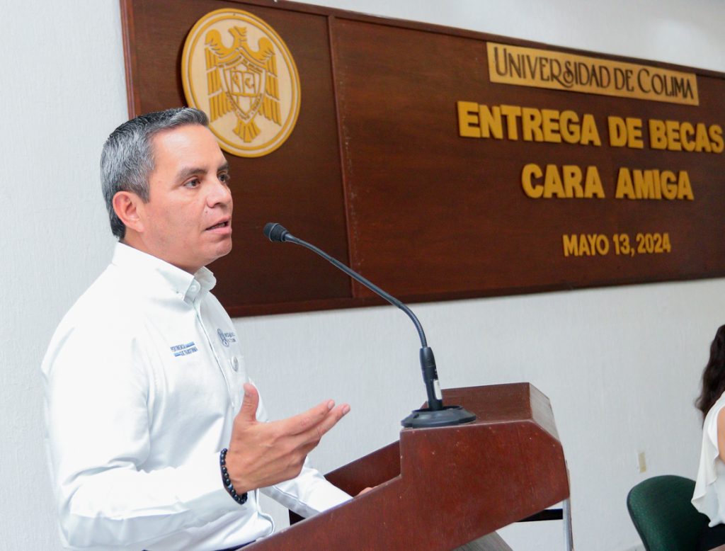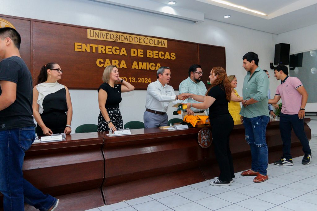 Gracias a las aportaciones voluntarias de la comunidad universitaria y la sociedad en general, Christian Jorge Torres Ortiz Zermeño, Rector de la Universidad de Colima, realizó la entrega de 52 becas económicas Cara Amiga a estudiantes de nivel superior pertenecientes a los 5 campus de la Casa de Estudios, beca que otorga 2,500 pesos para el semestre febrero-agosto 2024.