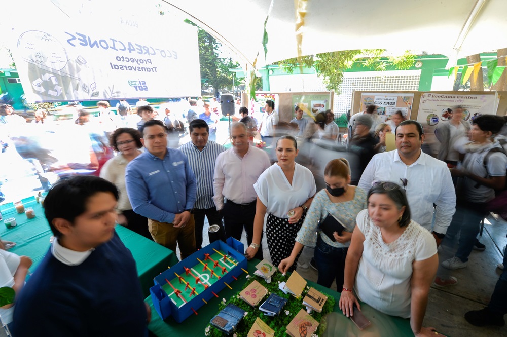 Dijo que, mediante la conformación de 72 equipos, generaron distintos productos en los que participaron más de mil estudiantes, la planta docente, integrada por 37 profesores y 10 administrativos de apoyo, quienes en 4 sesiones apoyaron a las y los alumnos en la elaboración de productos con materiales reciclados para que estos cumplieran con una utilidad específica.