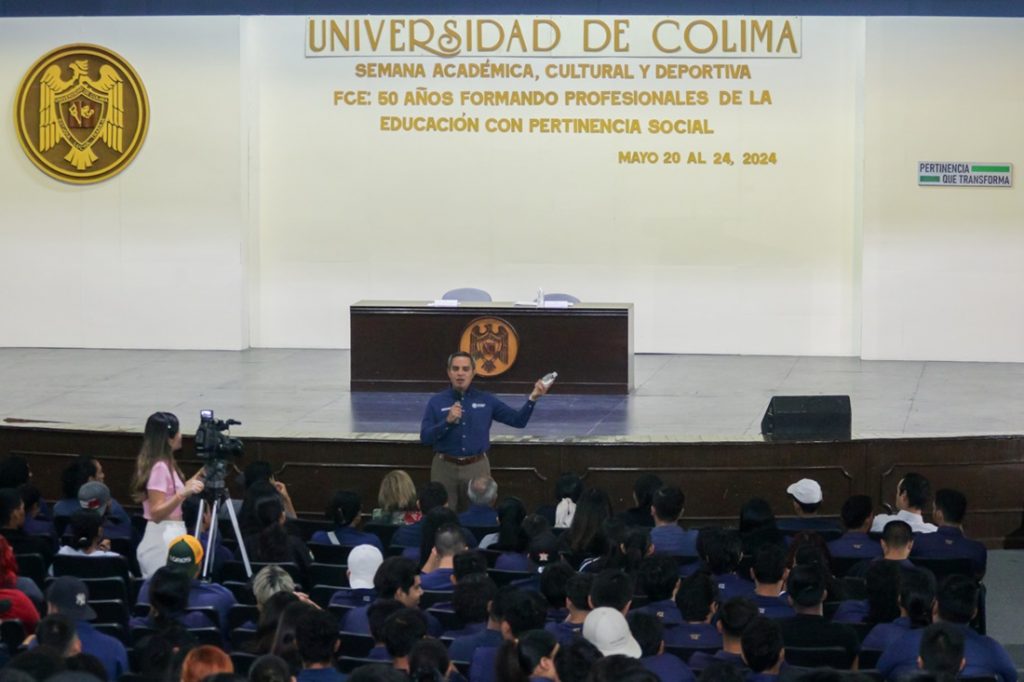 En el marco del 50 aniversario de la Facultad de Ciencias de la Educación (FCE), el Rector de la Universidad de Colima (UdeC), Christian Jorge Torres Ortiz Zermeño, ofreció la conferencia “Competencias de liderazgo efectivas en la Educación Superior”, dirigida a las y los alumnos, docentes y administrativos de este plantel. El evento se llevó a cabo en el Paraninfo Universitario.