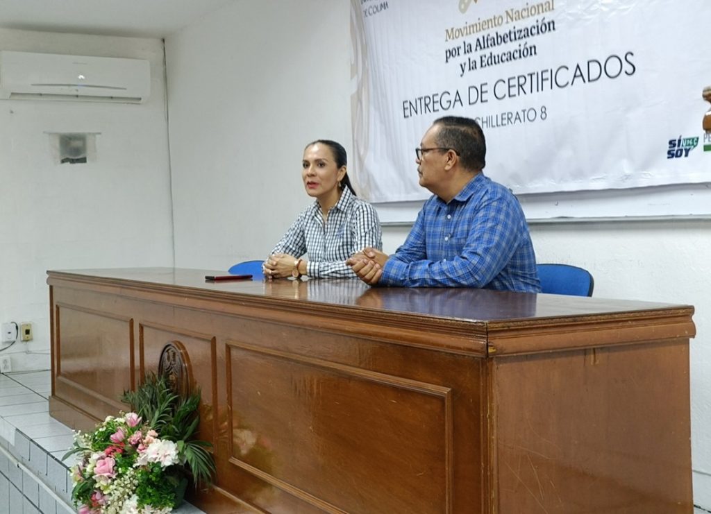 En la entrega de certificados estuvieron presentes Marco Rodarte Quintana, director general del IEEA Colima; y Alejandrina Covarrubias, directora del Bachillerato 8, en representación de las autoridades y universitarias.
