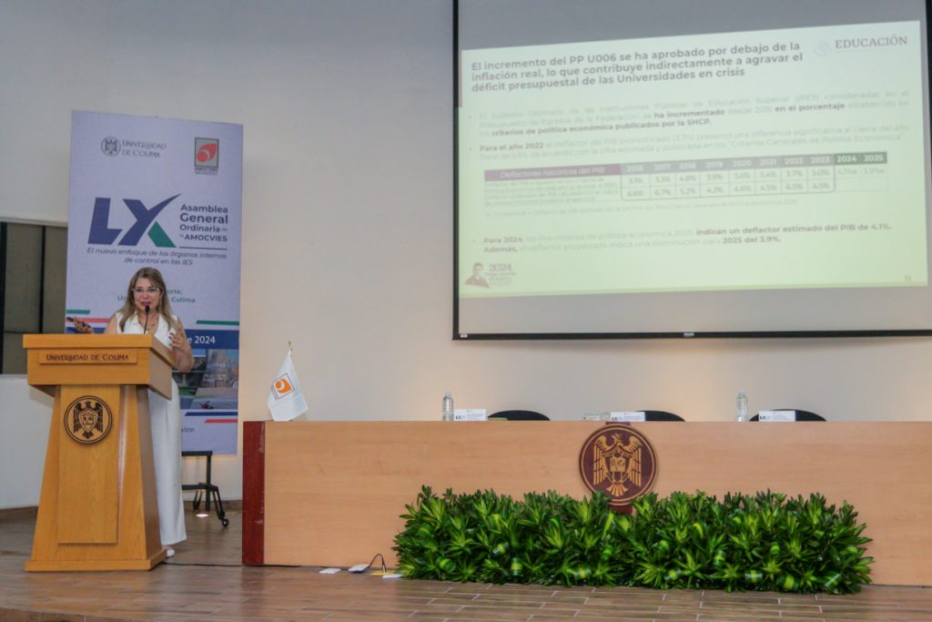 Carmen Armenta tituló su charla “Retos y perspectivas de la Universidad Pública: un trabajo en colectivo”. Con esa charla se inauguró la reunión número 60 de la Asamblea General Ordinaria de la Asociación Mexicana de Órganos de Control y Vigilancia en Instituciones de Educación Superior A.C. (Amocvies), celebrada del 29 al 31 de mayo en la Universidad de Colima (UdeC).