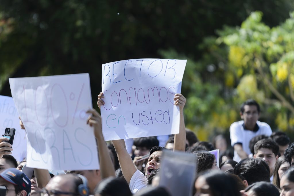 Con fundamento en los artículos 50, 51 y 52 del Reglamento Interno del H. Consejo Universitario, la mañana de este martes, centenares de estudiantes del nivel media superior y superior, encabezados por Camilo Alejandro García Morales, presidente de la Federación de Estudiantes Colimenses (FEC), se congregaron en la explanada de la rectoría para pronunciarse a favor de la reelección del Doctor Christian Jorge Torres Ortiz Zermeño, al frente de la Universidad de Colima (UdeC) para el período del 1 de febrero de 2025 al 31 de enero de 2029.