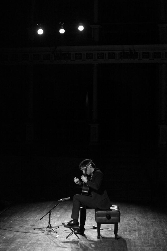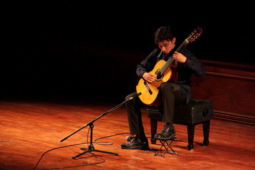 El primero en subir al escenario fue el joven guitarrista colimense Bruno Guedea, quien interpretó el “Prelude Presto”, de J. S. Bach, la pieza “Les Soirées d’ Auteuil”, del compositor Napoleón Coste y posteriormente los “Preludios” III y IV de Heitor Villa-Lobos, para continuar con “Toccata y lamento, a la memoria de Villa-Lobos”, del compositor Roberto Sierra.