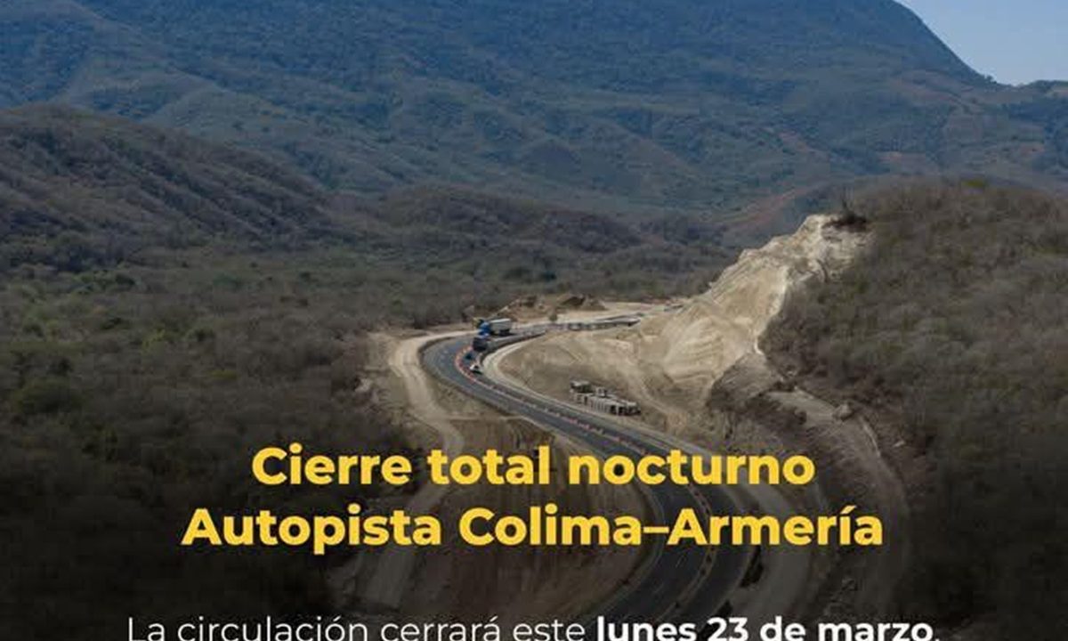 Habrá cierre total nocturno en la autopista Colima–Armería este lunes 23 de marzo